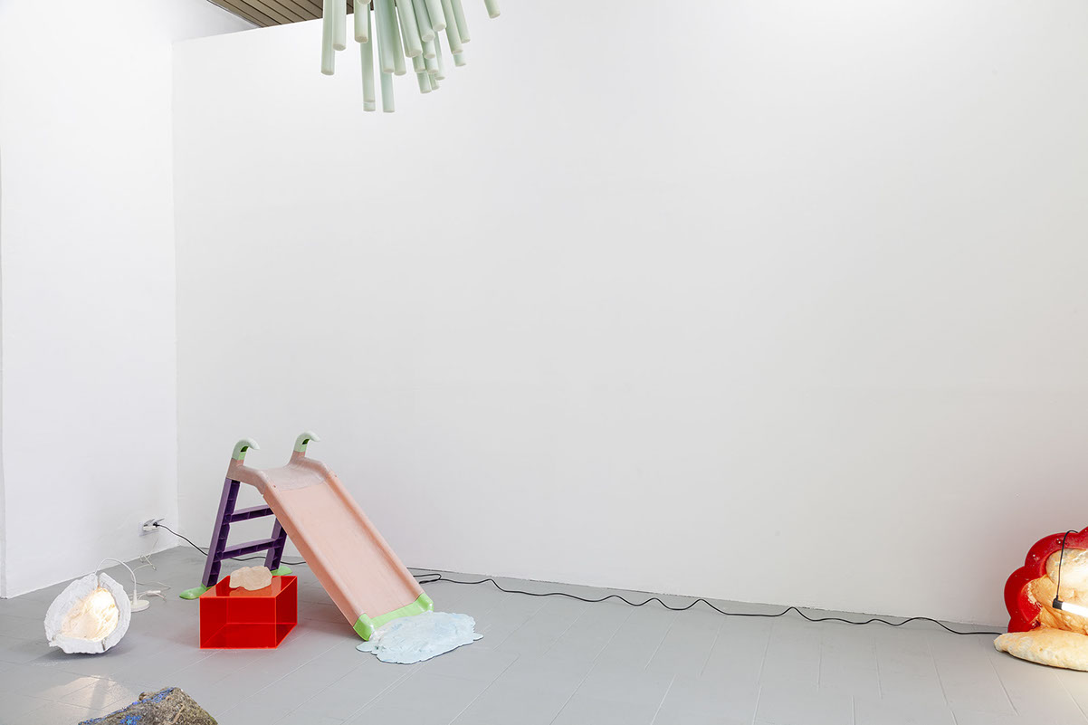 GARAGE SKETCHES / parts of plastic playgrounds, made and found stones, insulation accessories and materials / solo show / 2019