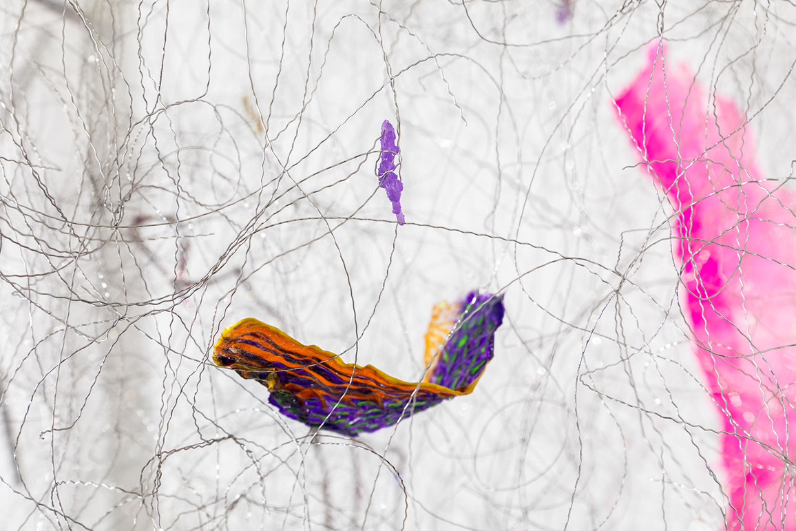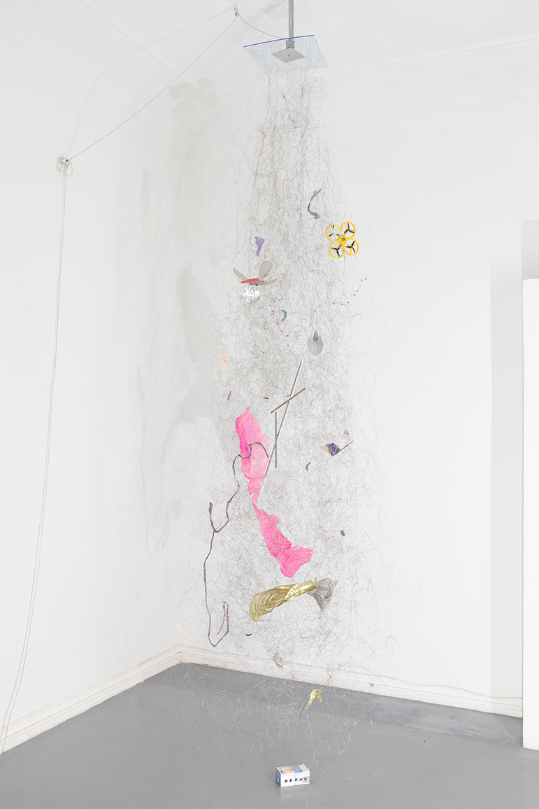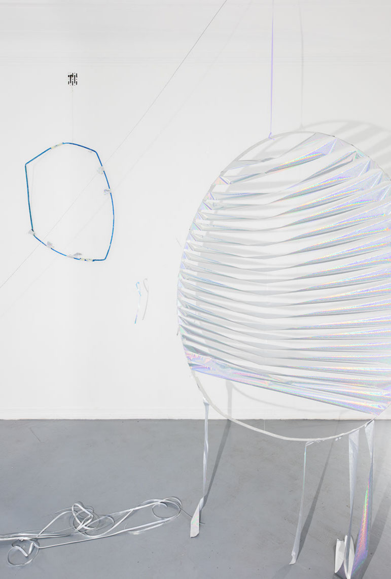 ‘Moving Things’ can be simply ‘things that are in motion’, but also ‘changing the position of things/setting things in motion’ or ‘things that move someone, affect them emotionally’. The artist does also not make any final conclusions, subjecting the space to the subjective feeling of the viewer. Referring to ‘The Crystalist Manifesto’, she evokes the juxtaposition of appearance and essence (truth) and reflects on the elusiveness, change and presence of many realities at the same time (‘every essence is nothing but an appearance for another essence’).