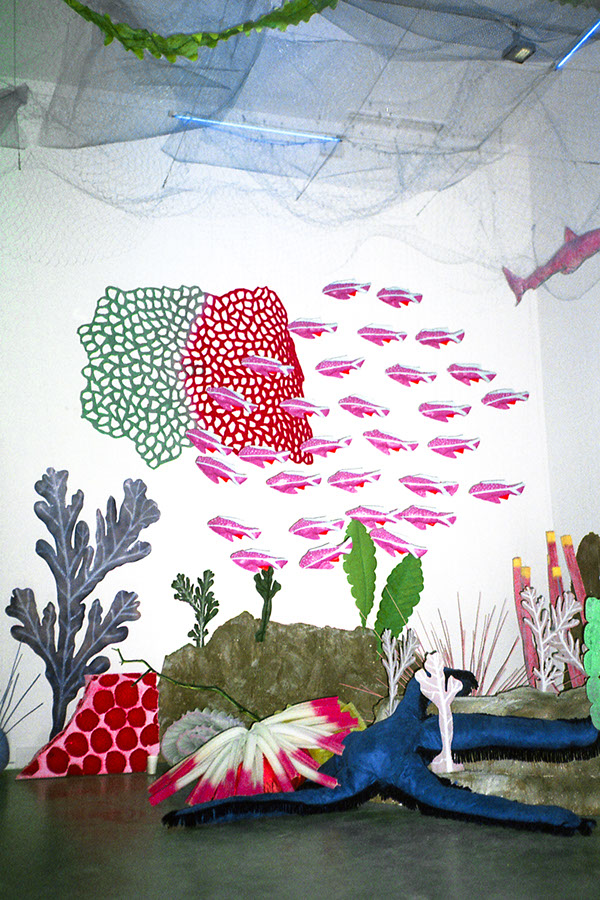 Party at the Artists’ Club, an exhibition by Marta Krześlak in the Project Room, takes the form of party decorations based on the motif of a coral reef on the bottom of the ocean. The point of departure for this exhibition was the artist’s encounter with the work of visual artists working in the communist Poland.