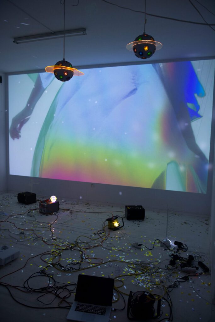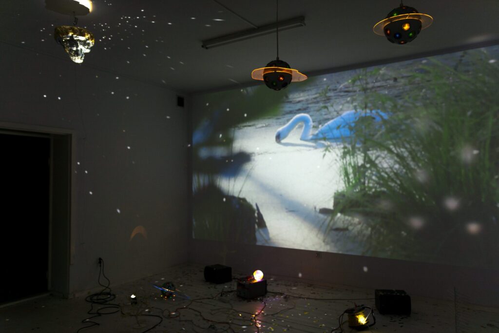 After nine minutes, the sound fades, the video and lamps switch off, and the room is returned to light