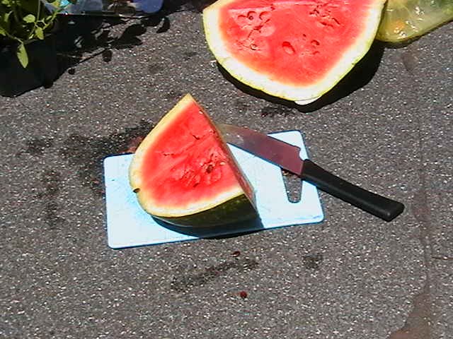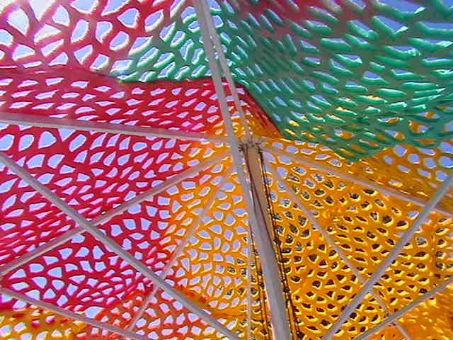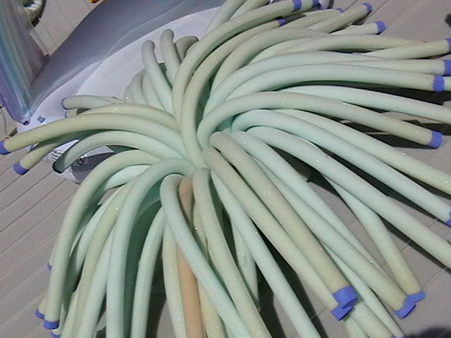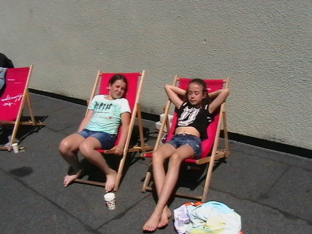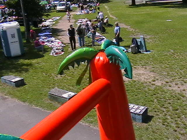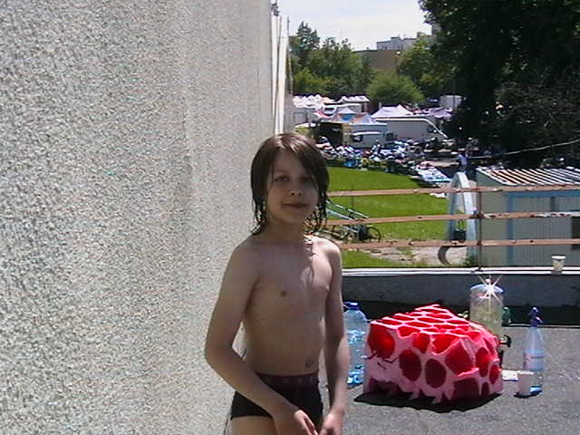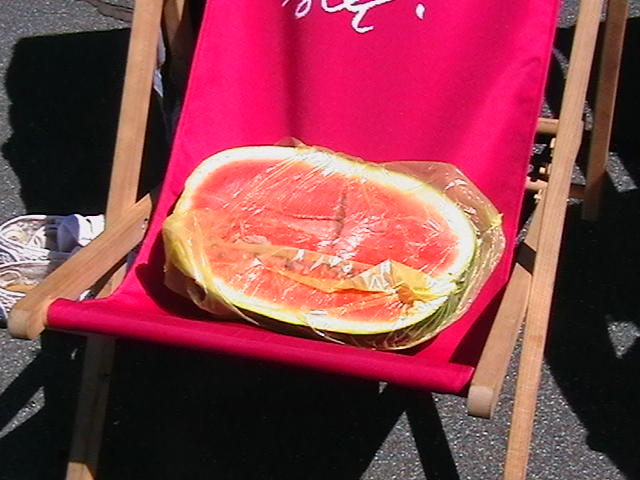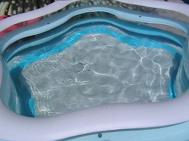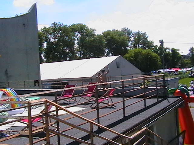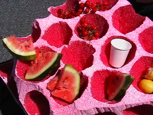 Scenographies from previous exhibitions, inflatable pools, food