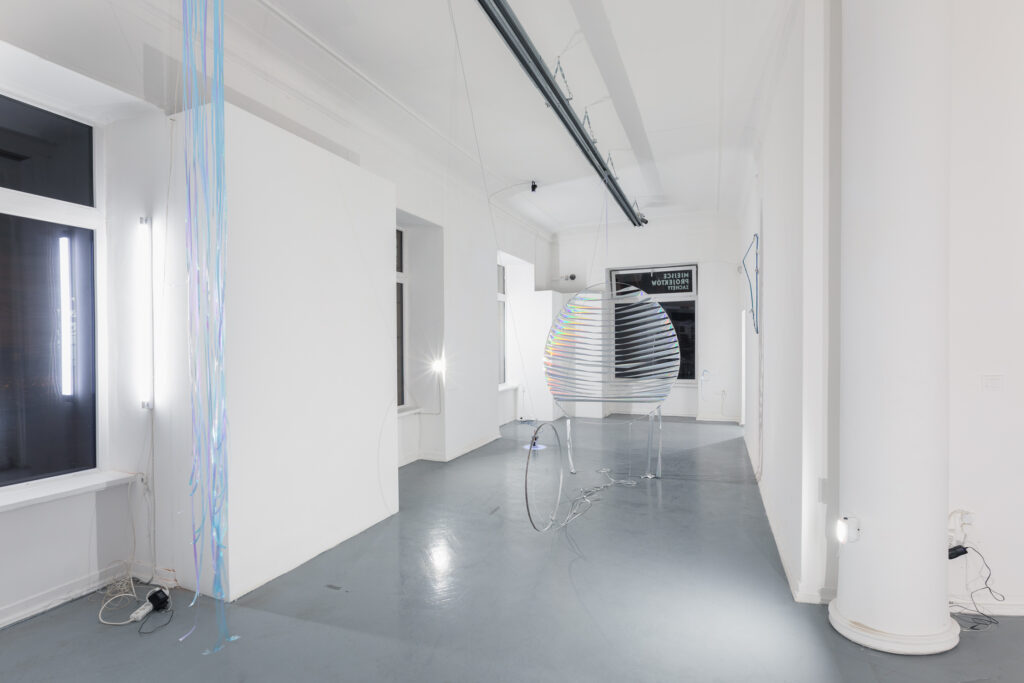 The openness of the meaning of the works is important to the artist. She draws attention to this fact with the very title of the show — by consciously choosing only the English version, she preserves its ambiguity. Moving Things can be simply ‘things that are in motion’, but also ‘changing the position of things/setting things in motion’ or ‘things that move someone, affect them emotionally’. The artist does also not make any final conclusions, subjecting the space to the subjective feeling of the viewer. . Referring to The Crystalist Manifesto, she evokes the juxtaposition of appearance and essence (truth) and reflects on the elusiveness, change and presence of many realities at the same time (‘every essence is nothing but an appearance for another essence’).