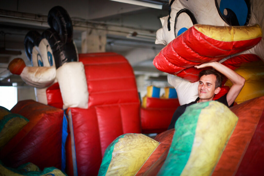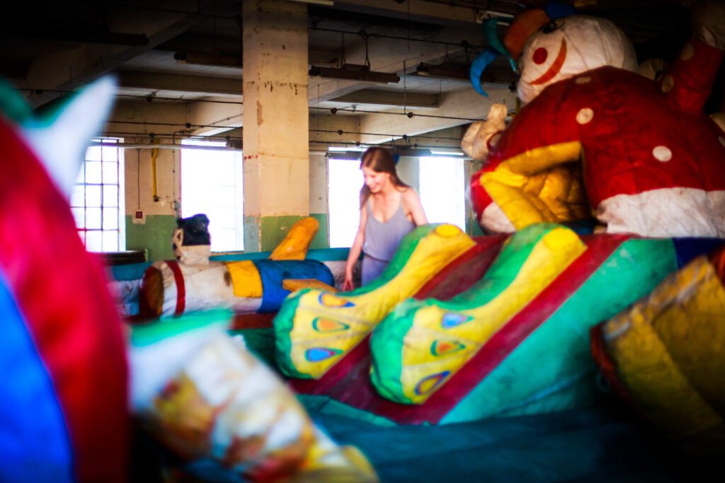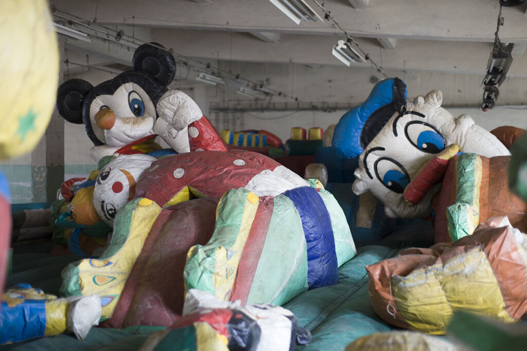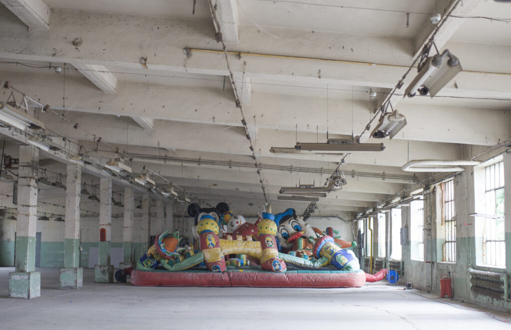 The giant factory where it was exhibited no longer exists, while the bouncy castle still lies behind my garage.