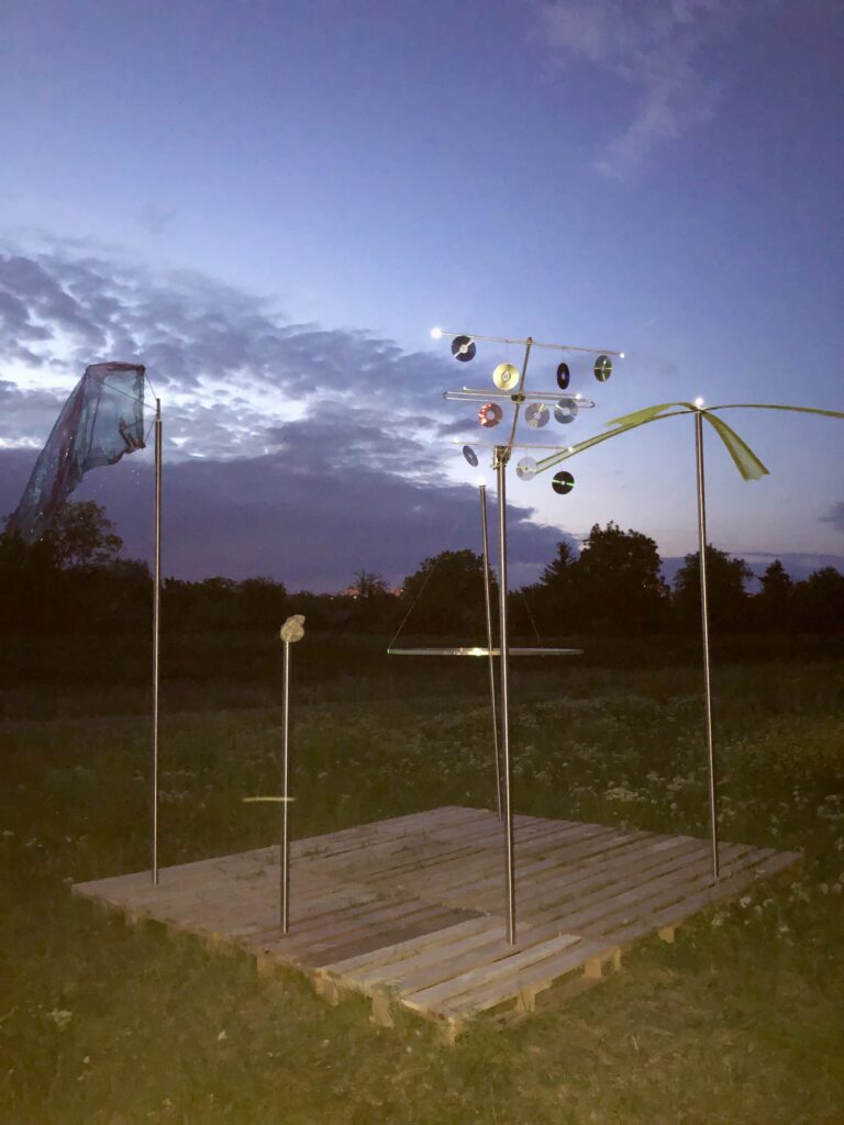 Along the Bystrzyca River, an array of metal masts supports kinetic objects that sway in the wind, catch the sun’s reflections, emit sounds, and respond to atmospheric conditions and the presence of passers-by. I have reimagined the traditional weather station as a poetic assemblage of object-instructions, inviting the observation and interpretation of phenomena through sensory engagement, imagination, and attentive presence.